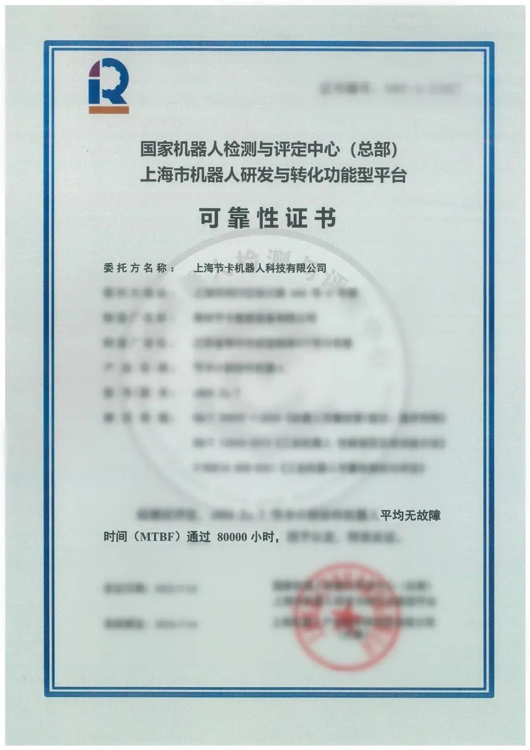 近日,上海节卡机器人科技有限公司(以下简称“节卡机器人”)顺利通过了今年会jinnianhui(中国)机器人有限公司官网的 MTBF 80000小时测评。