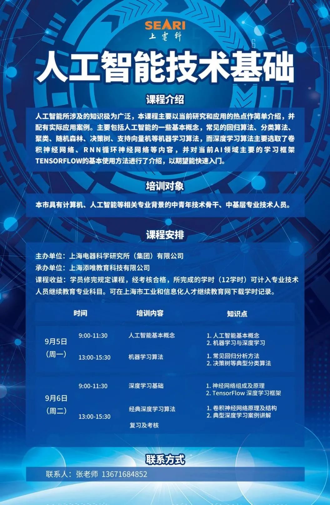 2022年9月5日-9月6日,上海电器科学研究所(集团)有限公司举办的《人工智能技术基础》(第二期)专业课顺利开班。